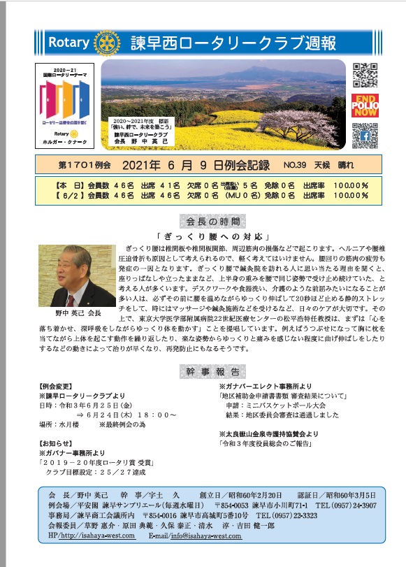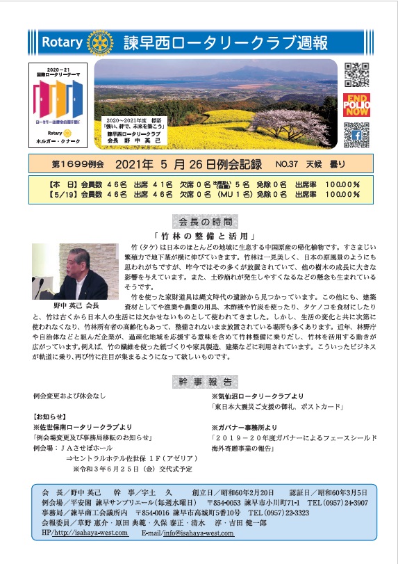 2020-2021年度 野中英巳 会長